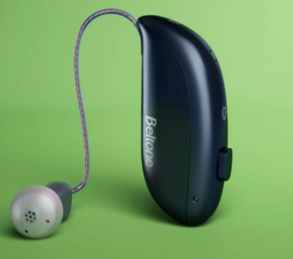 Beltone Envision cuenta con un diseño ergonómico que se ajusta con facilidad, permitiéndote usarlo todo el día sin molestias, sin importar el clima. Puedes elegir entre los audífonos AI recargables más pequeños del mundo o modelos compactos con pilas reemplazables.